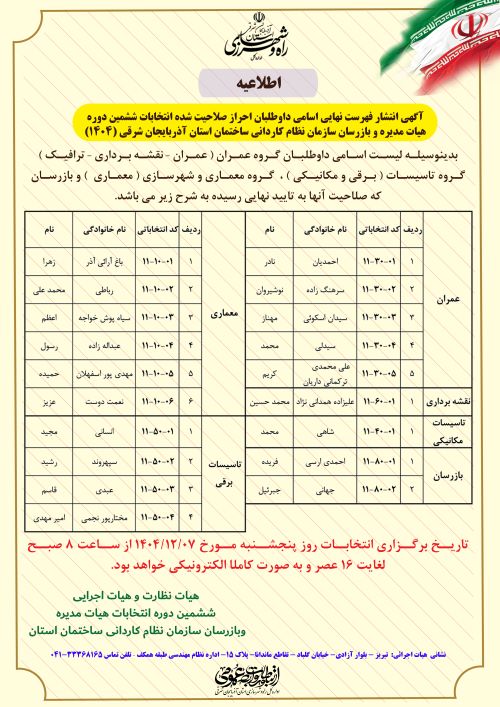 فهرست اسامی کاندیداهای احراز صلاحیت شده انتخابات هیات مدیره و بازرس